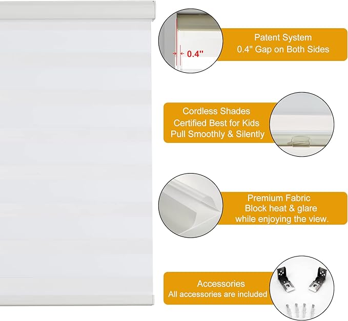 - 【Upgrade High-Quality Accessories】Our blind has been upgraded to have a sturdier bottom rail to prevent the fabric from fraying, which makes the two layers of fabrics more closely fit, maximizing the effect of shading. An anti-collision strip installed under the rail for protecting your window frame. Color-matched valance and the aluminum bottom bar suitable for all situations.