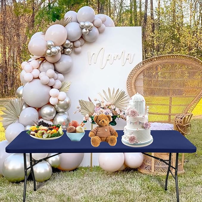 - ☕【Package Contains】 6 pieces of navy blue rectangle table top cap cover. Fits any 6’ long banquet-style table, this cover is an ideal accessory for our 30” wide by 72” long folding tables. They can wrap the table well and dress up your folding table. Make your table look clean and tidy, provide a comfortable table top. Perfect for any festive or formal occasion.