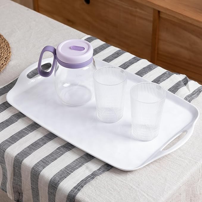 - Large Capacity: 19” x 12” rectangle sizing makes the tray large enough to carry bowl and plate sets efficiently. Also, the nesting 2-sets design is good for storage