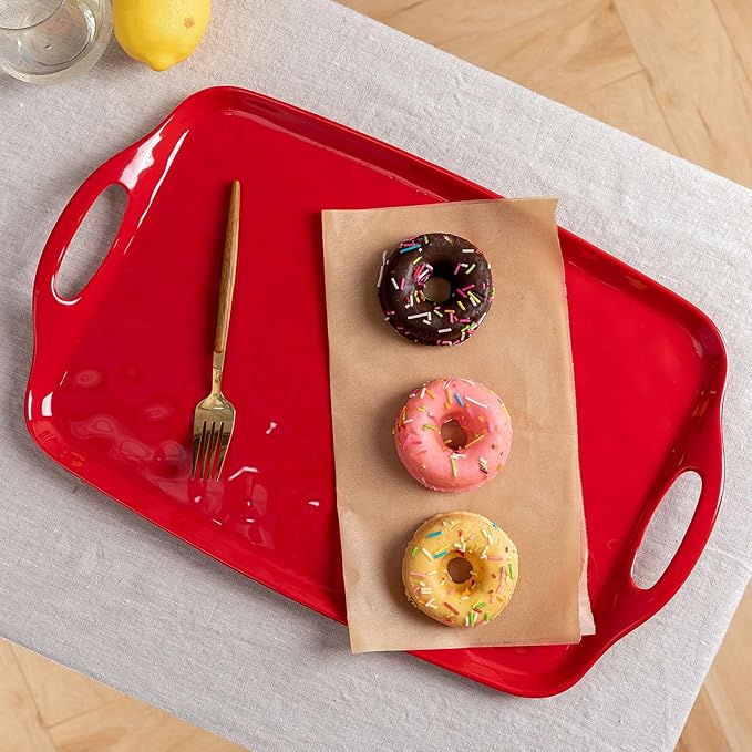 LEHAHA Large Christmas Melamine Serving Tray with Handles, Rectangular Serving Platter, Set of 2, 19''x12'' Turkey/Barbecue/Food/Grilling Prep and ServeTray. Bright White and Christmas Red