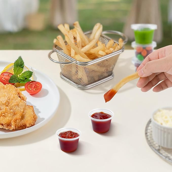 - 【Multi-purpose】:Not only for condiments, theses plastic containers are also perfect for yogurt, samples, jello shots, salad dressing and more.
