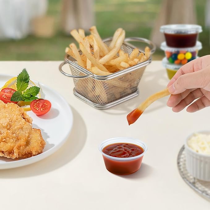 - 【Multi-purpose】:Not only for condiments, theses plastic containers are also perfect for yogurt, samples, jello shots, salad dressing and more.
