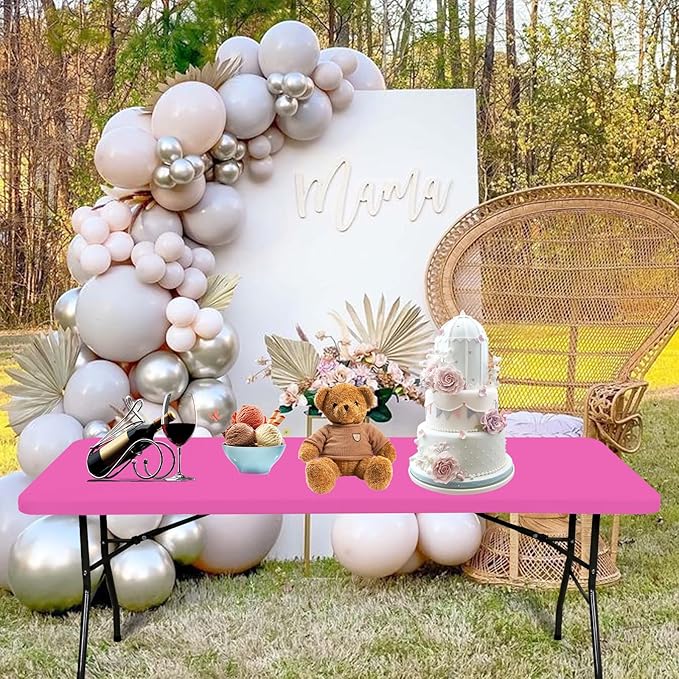 10 Pack Fitted Tablecloth for 8 Foot Rectangle Tables, Hot Pink Elastic Outdoor Picnic Table Cover, Washable Stretch Folding Table Cloths 8 ft for Camping Party Patio Kitchen Banquet, 30" W x 96" L