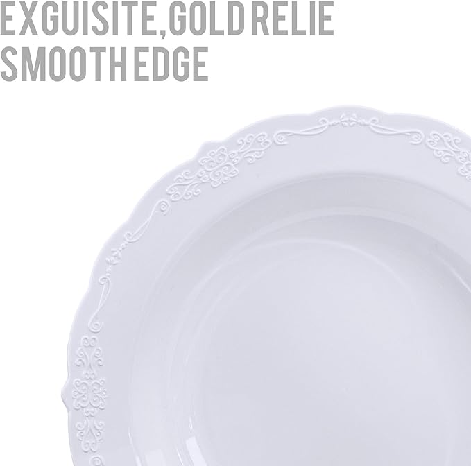 - STURDY & DURABLE - These disposable plastic bowls are crafted from heavy-duty plastic, ensuring resistance to bending and breaking. The accented bowls maintain their shape and integrity even when holding hot soups, cold dishes, or heavier foods. Additionally, you can wash and store these soup bowls in a dry place for future reuse.