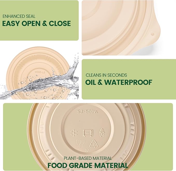 - ✅ Microwave & Freezer Safe for Convenience: Reinforced PP composite technology enhances strength and leak resistance (safe from -4°F to 248°F). Reheat meals or freeze soups worry-free—no sogginess or spills like pure starch containers. More durable than paper and bagasse lunch boxes.(Remove lid before microwaving!)