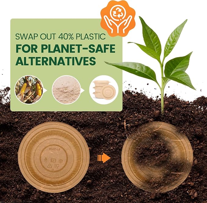- ✅ Corn Starch-Based Plant Containers & Lids: Set includes 50 containers and 50 matching lids. Odor-Free Lunch Box!Made from 40% plant-based cornstarch and food-grade PP, these food storage containers reduce plastic waste by 40%. Ideal for eco-conscious homes and businesses seeking sustainable alternatives.