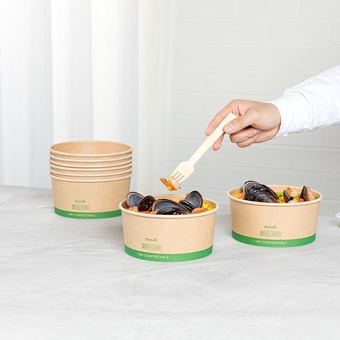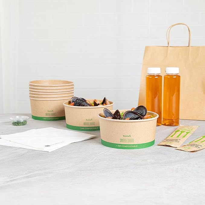 - COMPOSTABLE MATERIAL: Crafted from commercially compostable paper, these kraft food containers help reduce waste and minimize your carbon footprint. Make a sustainable choice!