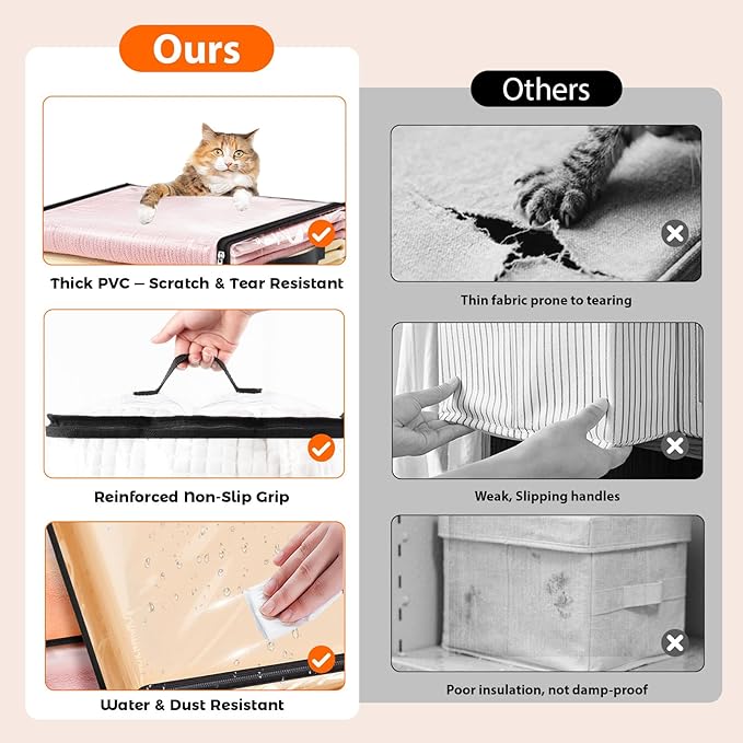- Heavy-Duty Protection with 360° Clarity: Crafted from thickened, reinforced PVC, these transparent bags offer tear-resistant protection against dust, humidity, and impacts. The clear material provides instant visibility to your items without unzipping—so you can effortlessly find what you need while keeping contents sealed