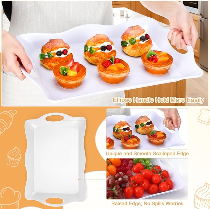 6 Pcs Large Melamine Serving Tray with Handles 17 x 12 Inch Rectangular Wave Melamine Serving Platters for Food, Eating, Turkey, Snack, Fruit, Desserts, Party, Dishwasher Safe